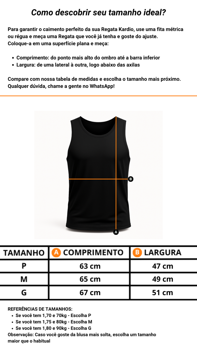 Com caimento atlético e linhas precisas, a Regata Kardio valoriza o físico sem marcar e mantém a elegância mesmo durante treinos e corridas.